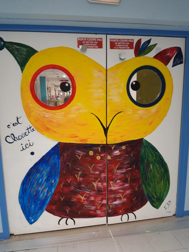 Nous avons également pu décorer la porte d’entrée du service de la pédiatrie fin 2021 (Merci Isabelle Reysset)