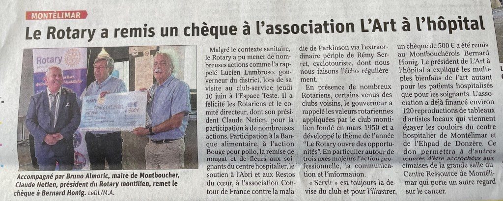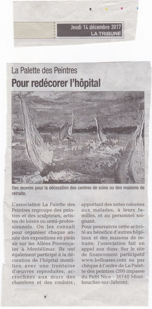 Voici une publication de France Bleu concernant notre exposition-vente caritative en 2024